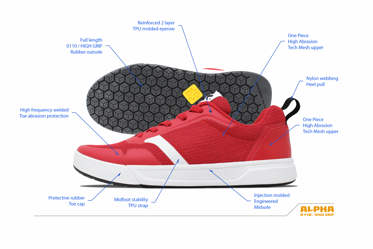 The high-friction rubber outsole offers outstanding traction on rough concrete and smooth rails. Athletes trust Alpha shoes for confident landings, even in unpredictable environments.